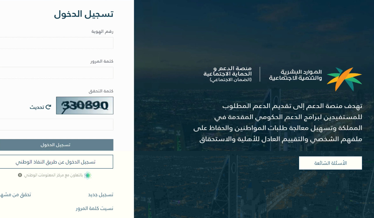 تتيح وزارة الموارد البشرية خدمة الضمان الاجتماعي المطور استعلام برقم الهوية من خلال اتباع الإجراءات التالية: