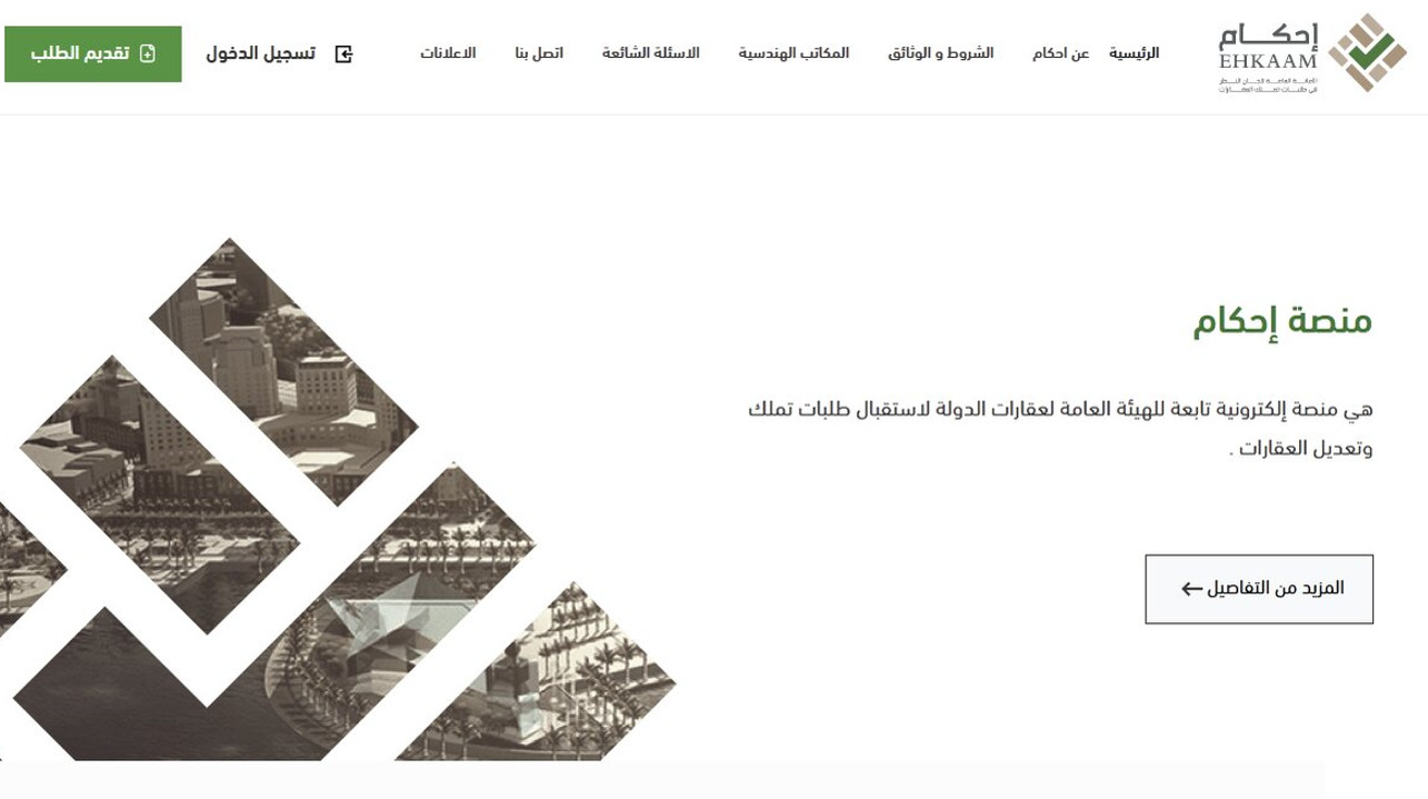 حتى يمكن أن يتم تقديم طلب تملك عقار عبر منصة إحكام الإلكترونية، يجب أن يتم القيام بالإجراءات التالية: