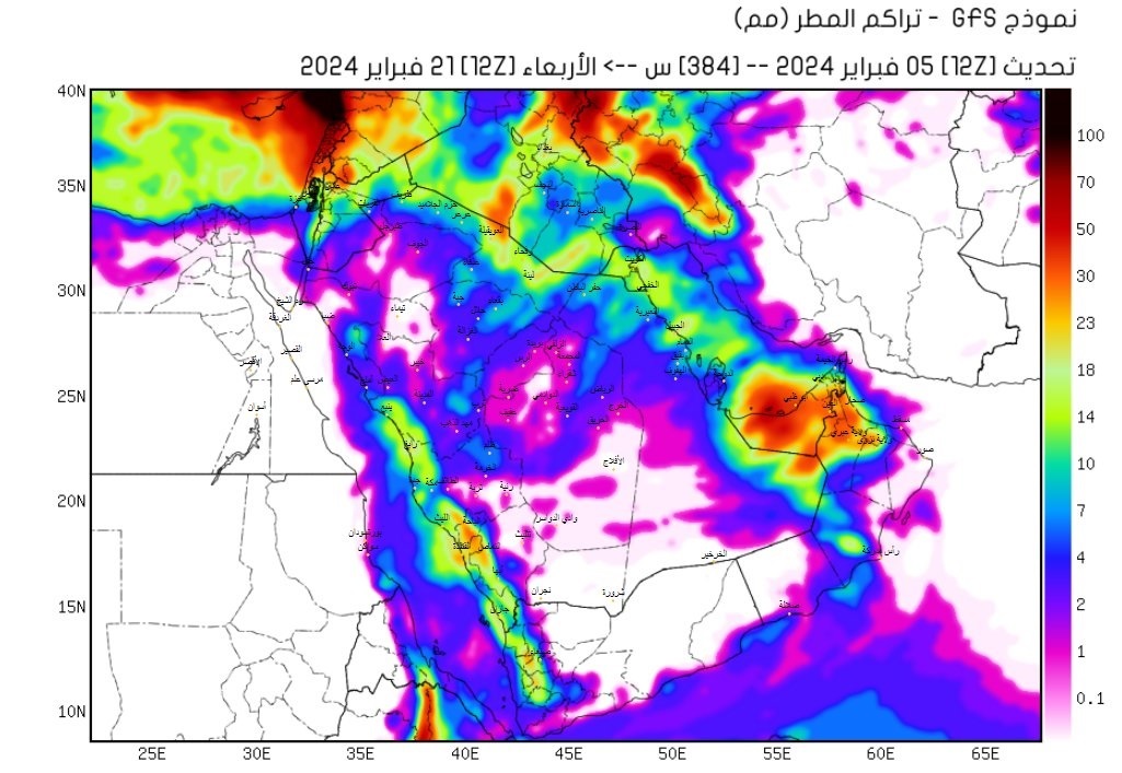 نطاق تأثير الحالة الممطرة وخريطتها المتوقعة