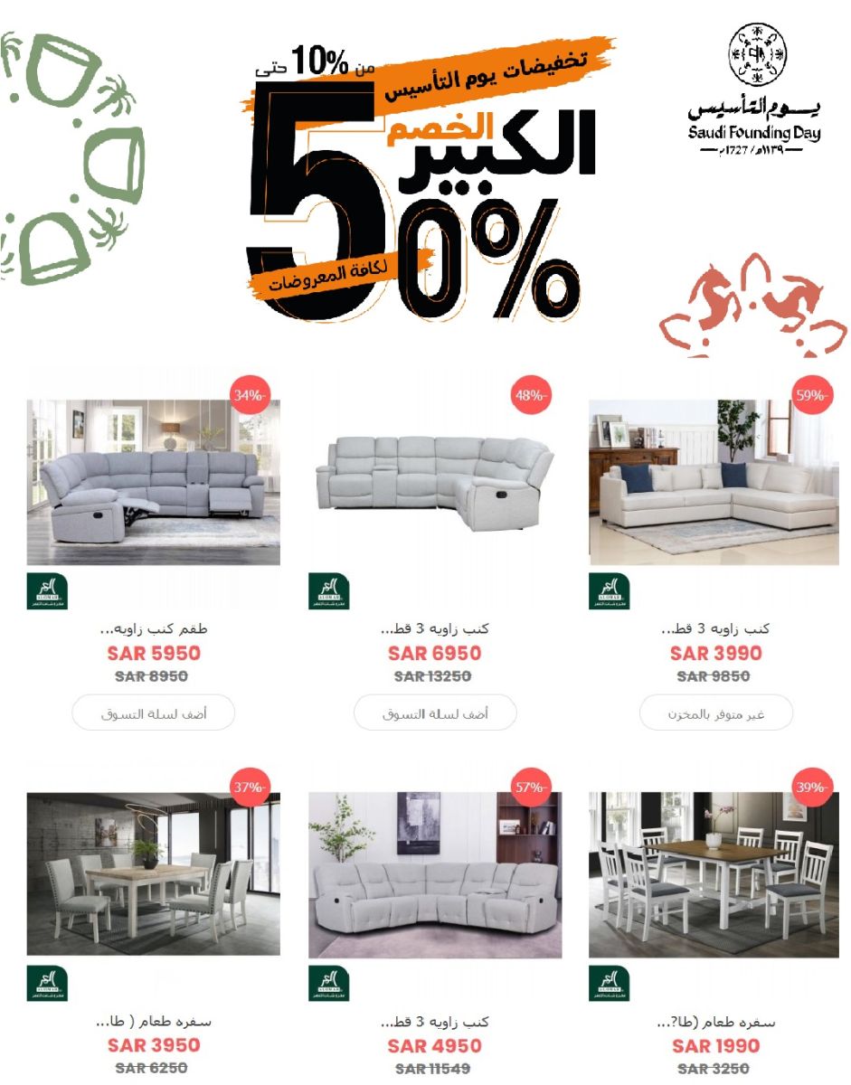 اليوم وغداً العروض القوية على الآثاث مع هدايا فورية بمناسبة يوم التأسيس
