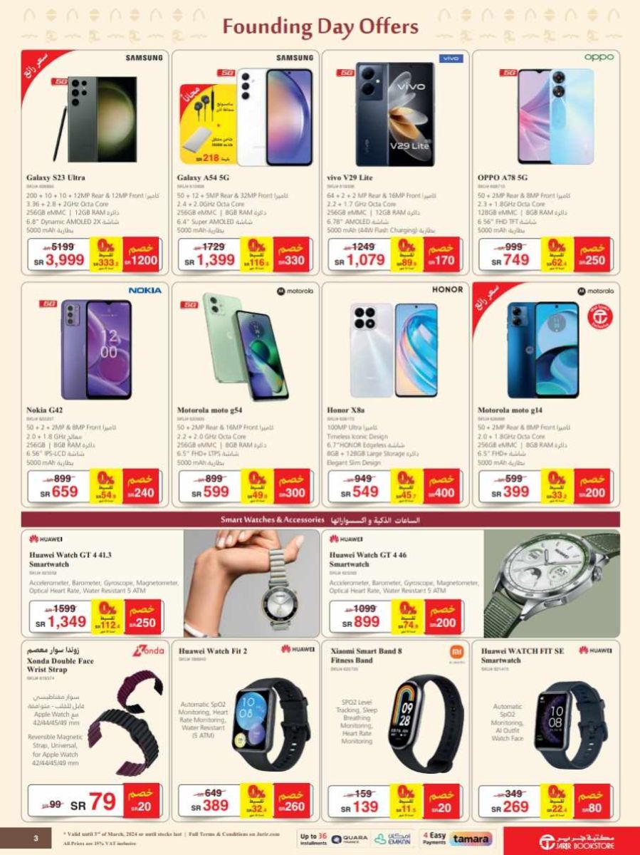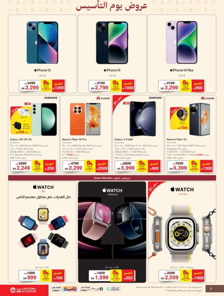 أسعار الجوالات والشاشات والساعات الذكية في عروض مكتبة جرير بمناسبة يوم التأسيس