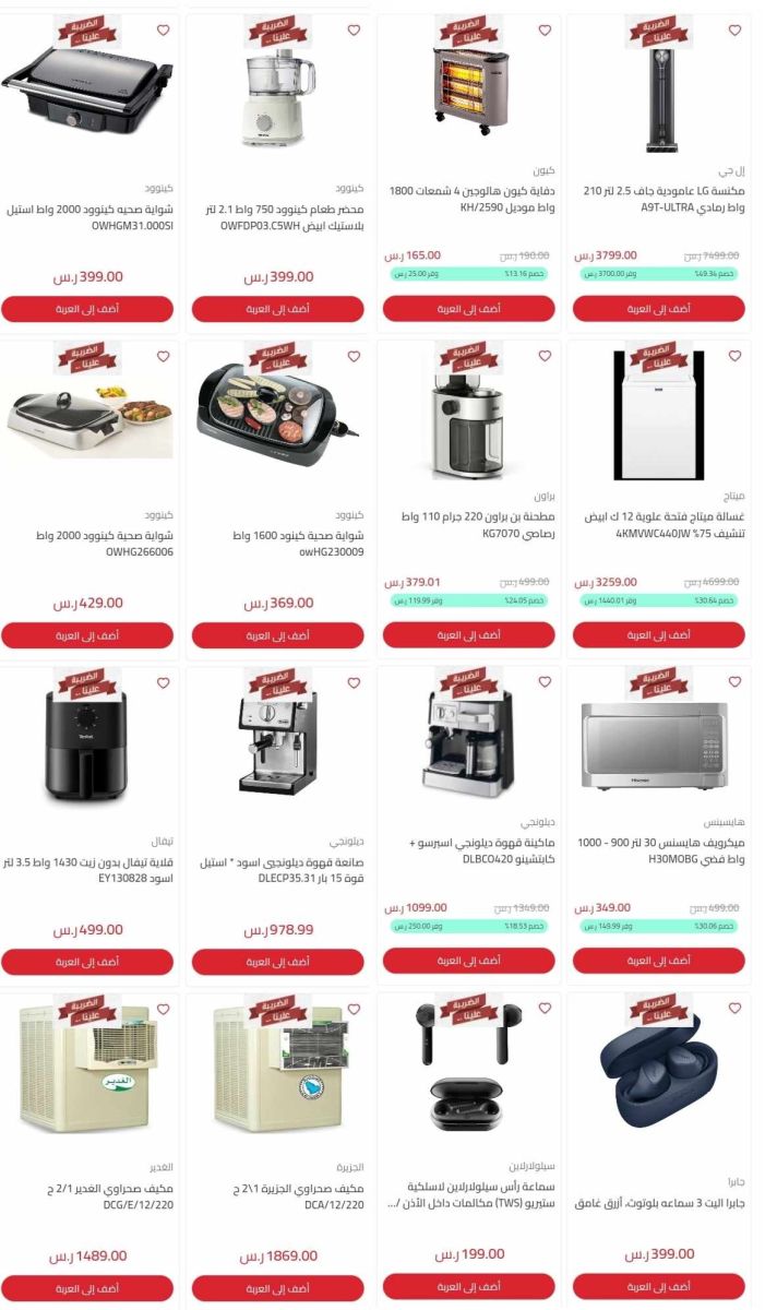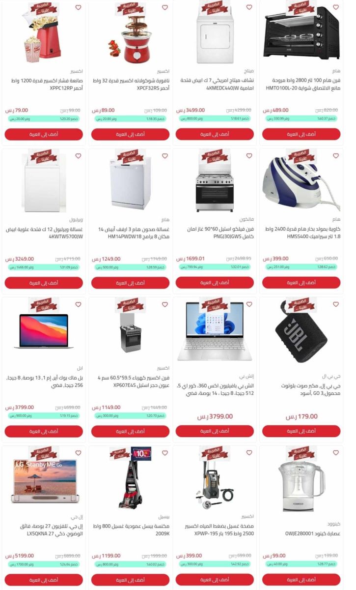 ### أفضل العروض على الأجهزة الكهربائية في فترة العروض، يمكنك الاختيار من بين مجموعة متنوعة من الأجهزة الكبيرة مثل الغسالات، الثلاجات، البوتاجازات، وأجهزة التكييف، بالإضافة إلى محضرات الطعام وأجهزة الخلاطات ذات الجودة العالية.