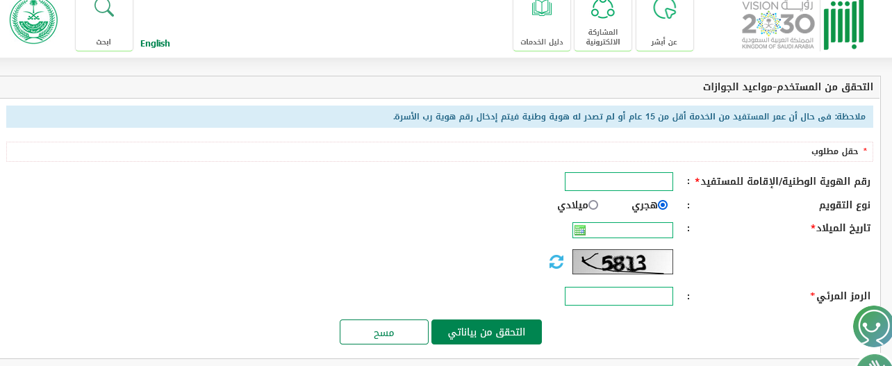 - 4. ملء جميع الخانات بتفاصيل التاريخ وكود التحقق.
