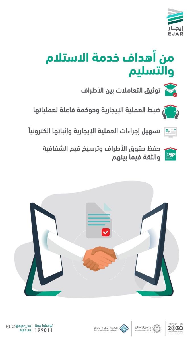 لاثبات الحالة الإيجارية منصة إيجار توضح خطوات واجراءات استلام وتسليم العقار السكني