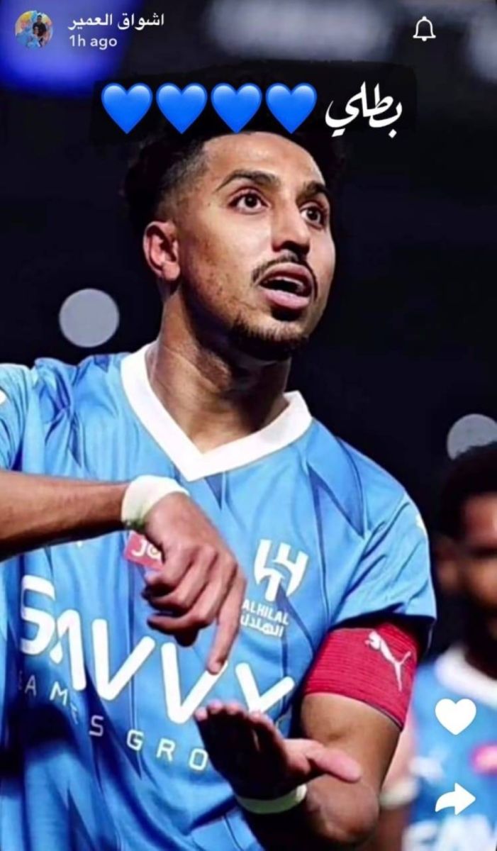 عبرت أشواق العمير، رائدة الأعمال المعروفة، عن إعجابها الشديد بزوجها، نجم فريق الهلال، سالم الدوسري، احتفال بتسجيله الهدف رقم 100 مع فريقه.