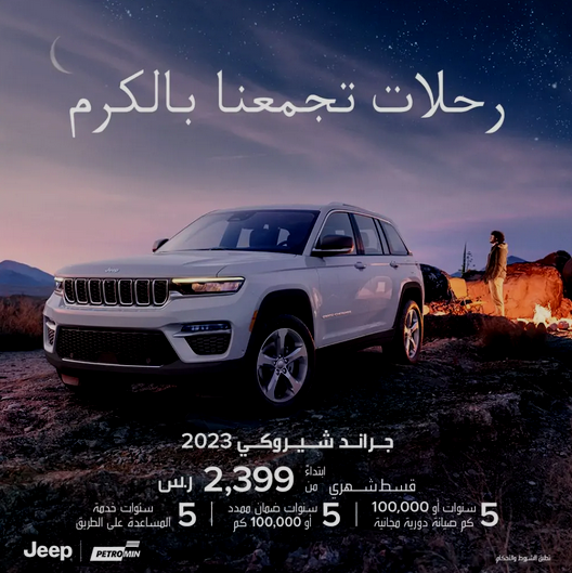 يُعتبر عرض شركة بترومين ستيلانتس لسيارة جيب جراند شيروكي 2023 خلال شهر رمضان المبارك فرصة مثيرة للانتباه، حيث يتضمن العرض مجموعة من المزايا والخدمات المميزة.