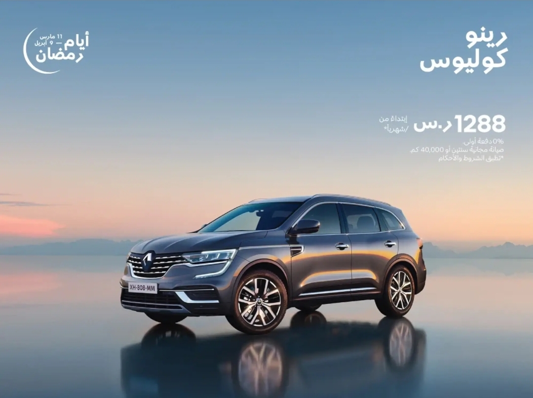 أما سيارة رينو كوليوس 2024 سمارت، يمكن الحصول عليها بقسط شهري يبلغ 1,288 ريال سعودي، بدون دفعة أولى، ومع صيانة مجانية لمدة عامين.
