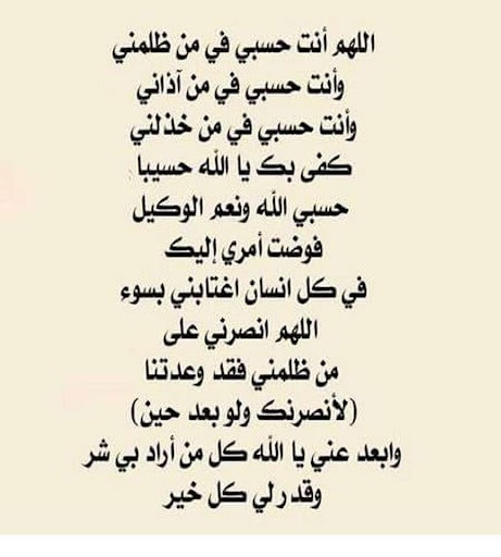 - يا الله، عندما سدت جميع الطرق في وجهي، ظل بابك مفتوحًا، وحينما انقطعت كل الوسائل، بقيت أنت ملاذي، فبدون قدرتك لا أملك حيلة أو طاقة، يا الله لا تتخل عني فقد تعرضت للظلم والقهر، أكن لي السند يا أكرم الأكرمين.