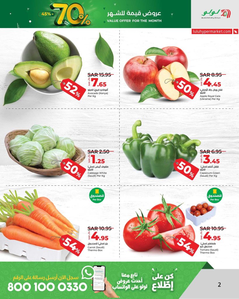 كما تتوفر عروض على صندوق الجزر المحلي وصندوق الطماطم الكبير المحلي، بالإضافة إلى خصومات على الفلفل الأخضر المحلي، الملفوف الأبيض المحلي، الأفوكادو الكيني، تفاح رويال جالا الأوكراني، تشيلاكس مقرمشات الذرة، غسول اليدين من لولو، صدور الديك الرومي المدخن من الفضيل، ومسحوق الغسيل وغسول اليدين من هوم ميت.