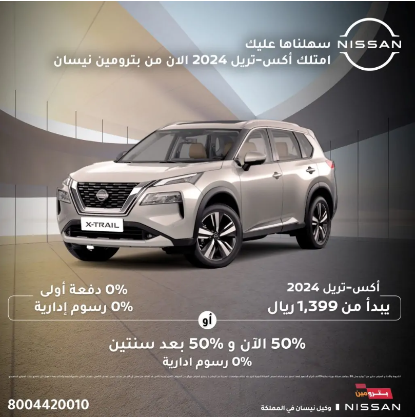 أعلنت بترومين نيسان، الوكيل الحصري لسيارات نيسان في المملكة العربية السعودية، عن إطلاق عروض جديدة تحت شعار "سهلناها عليك"، لتشمل نيسان أكس تريل 2024.