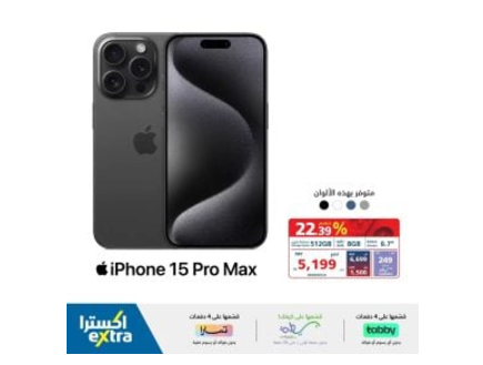 - هاتف أبل آيفون 15 برو ماكس، بحجم شاشة 6.7 بوصة وسعة تخزين 256 جيجا مصنوع من التيتانيوم الطبيعي، بسعر 4899 ريال سعودي بعد خصم 800 ريال.