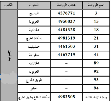 - تشمل الروضات في هذا المكتب نطاق جغرافي واسع يشمل: