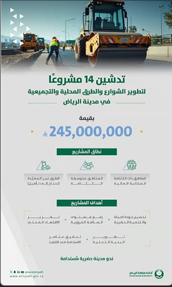 وتشمل هذه المرحلة الأولى 14 مشروع تطويري موجه لتأهيل الشوارع والطرق المحلية والتجميعية، وذلك ضمن خطة استراتيجية تسعى إلى جعل العاصمة نموذج متكامل للمدن العصرية المتوافقة مع مستهدفات رؤية المملكة 2030.