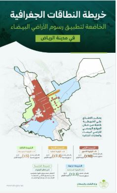 أعلنت وزارة البلديات والإسكان في المملكة العربية السعودية عن بدء تطبيق آلية جديدة لبرنامج رسوم الأراضي البيضاء في العاصمة الرياض، وذلك من خلال تقسيم المدينة إلى نطاقات جغرافية محددة، يتم فرض رسوم متفاوتة عليها بحسب الأولوية وأهمية الموقع.