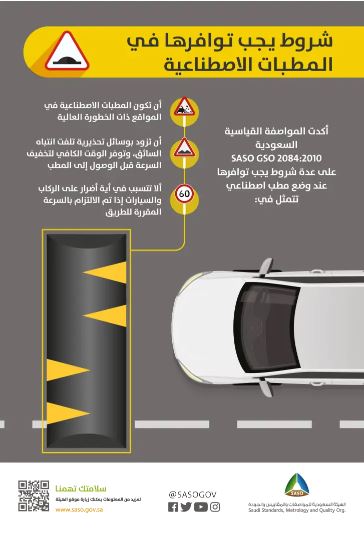 تخضع المطبات الصناعية لمجموعة من الشروط التي وضعتها الهيئة السعودية للمواصفات والمقاييس والجودة، ومن أبرز المبررات التي تستوجب تركيبها: