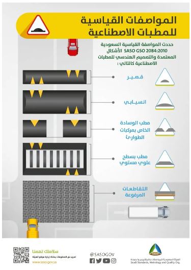 تم اعتماد عدة أنواع من المطبات الصناعية في المملكة العربية السعودية، تتفاوت في التصميم والغرض، ومن أبرزها: