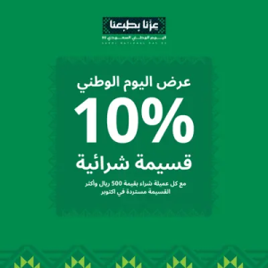- قسيمة شرائية بنسبة 10% تُمنح مباشرة عند كل عملية شراء لا تقل عن 500 ريال سعودي.