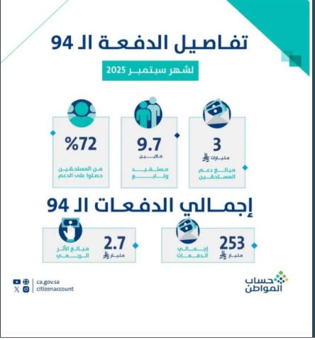 كم استلم المستفيدين من دعم حساب المواطن في سبتمبر 2025