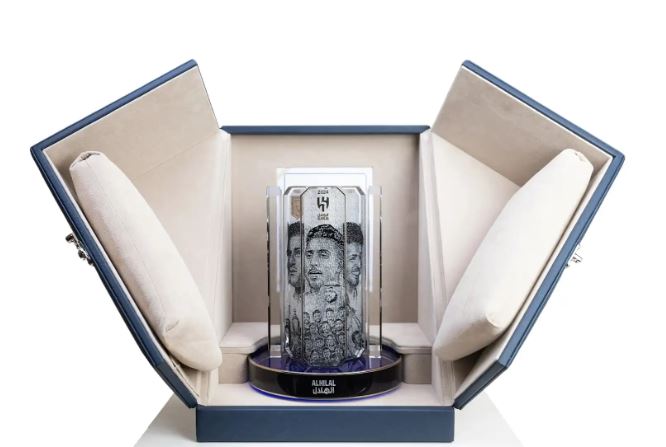 الهدية عبارة عن مجسم رائع يضم صور أبرز نجوم النادي على مر تاريخه، ما يجسد تاريخ الهلال العريق ويجمع بين رموز الماضي والحاضر في قطعة فنية واحدة.