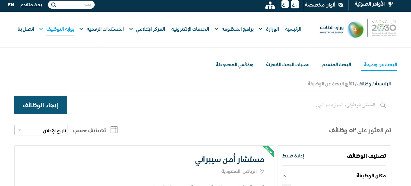 تم الإعلان عن فرص وظيفية شاغرة في وزارة الطاقة، حيث تم طرح 52 وظيفة لحملة شهادات التعليم المختلفة بما في ذلك الثانوية العامة والدبلوم والبكالوريوس وما فوق، وتشمل الوظائف مجموعة متنوعة من التخصصات والمؤهلات، وتوزعت في عدة مناطق بالمملكة العربية السعودية، بما في ذلك الرياض، جدة، جازان، الشرقية، المدينة المنورة، عرعر، سكاكا، بريدة، الباحة، نجران، وحائل.