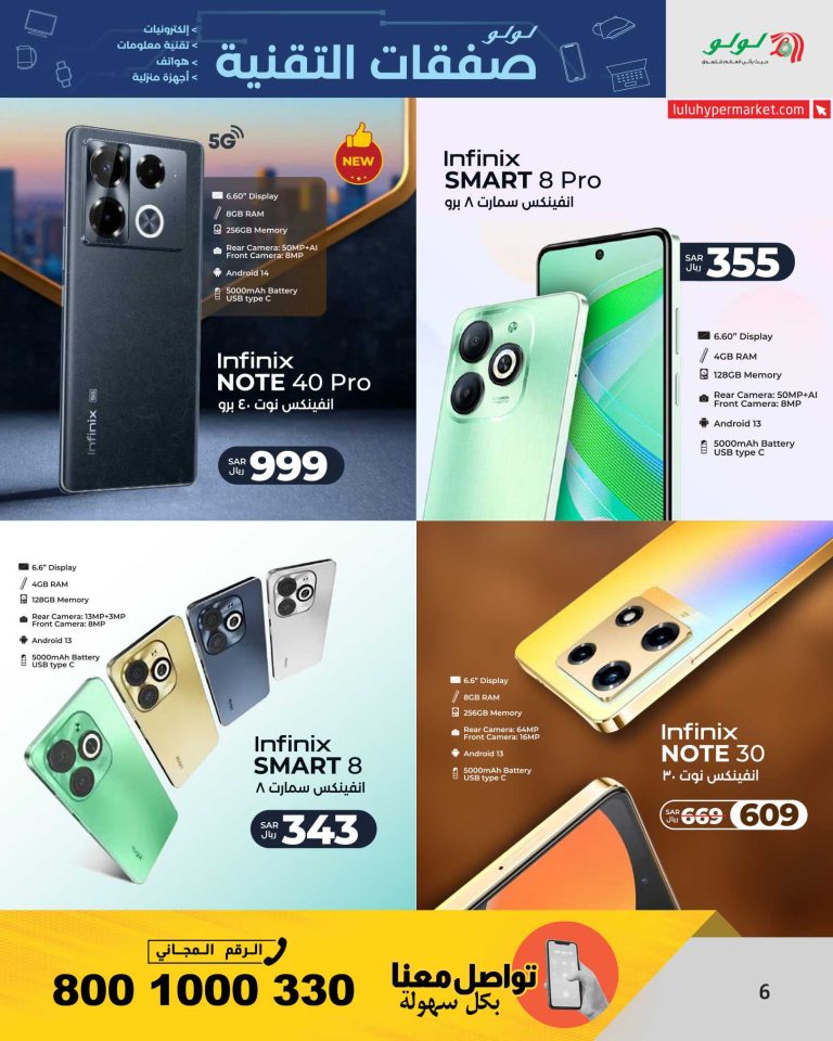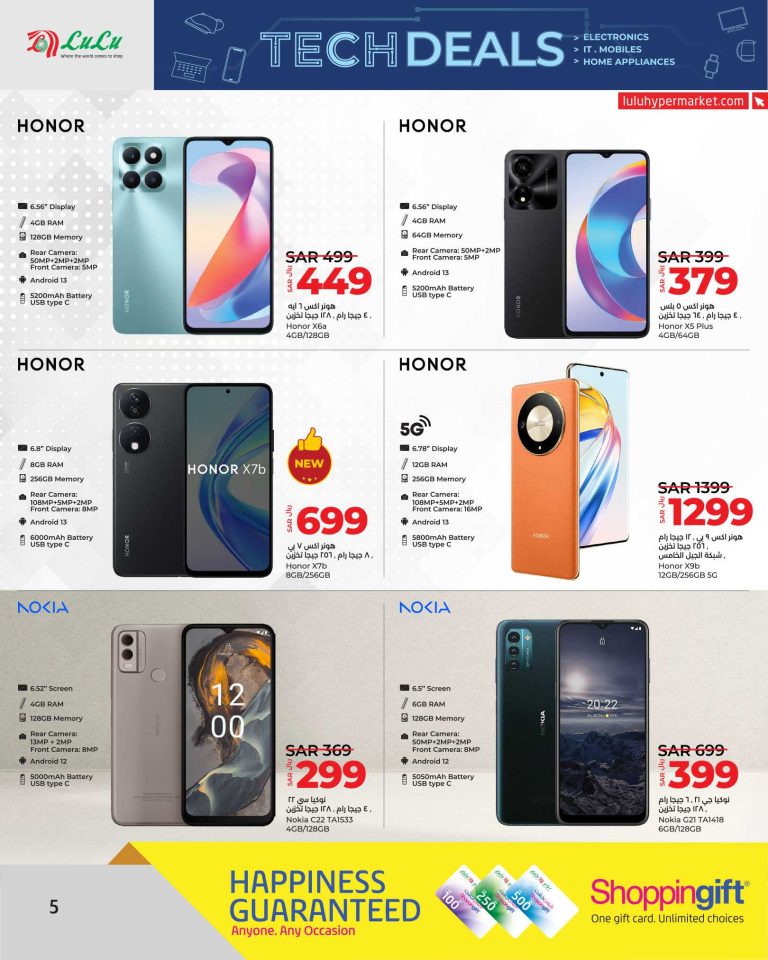 تستمر العروض في لولو مع مزيد من الخصومات الرائعة على الجوالات مثل جوال نوكيا C22 بسعة 128 جيجابايت و4 جيجابايت رام، وخصم على جوال نوكيا G21 بنفس سعة التخزين، وأيضاً خصم مميز على جوال هونر X9 بسعة تخزين 128 جيجابايت ورام 12 جيجابايت، بالإضافة إلى خصم حصري آخر على جوال هونر X7 بسعة تخزين 256 جيجابايت و8 جيجابايت رام، وعرض خاص على جوال إنفينكس Smart 8 Pro.