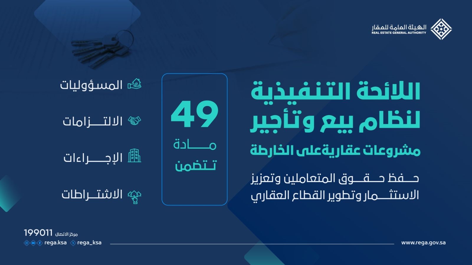 وحثت الهيئة جميع المطورين العقاريين الذين يرغبون في الاستفادة من هذا النظام، أن يبادروا بتقديم طلبات التأهيل اللازمة - في حال عدم حصولهم على التأهيل مسبقاً - واستخراج التراخيص المطلوبة لممارسة هذا النوع من النشاط، عبر المنصة الإلكترونية المخصصة لهذا الغرض، والتي تستقبل طلبات الترخيص لمشاريع على الخارطة بكافة تصنيفاتها وأشكالها.