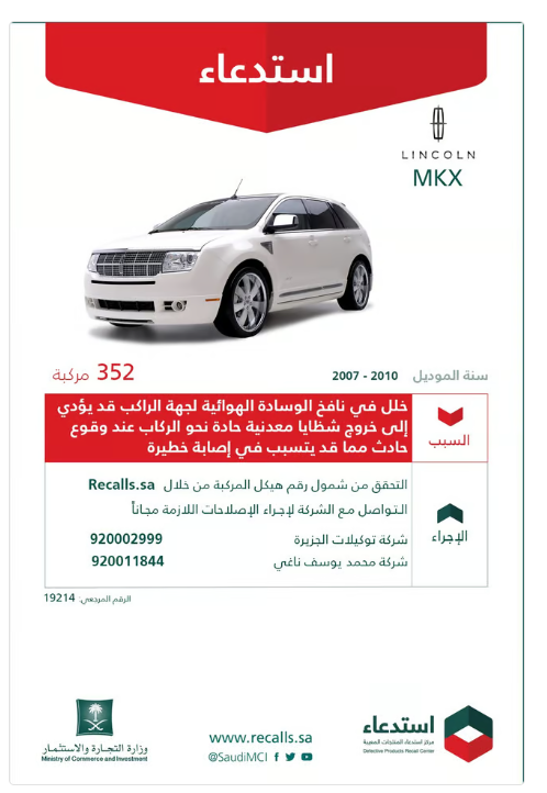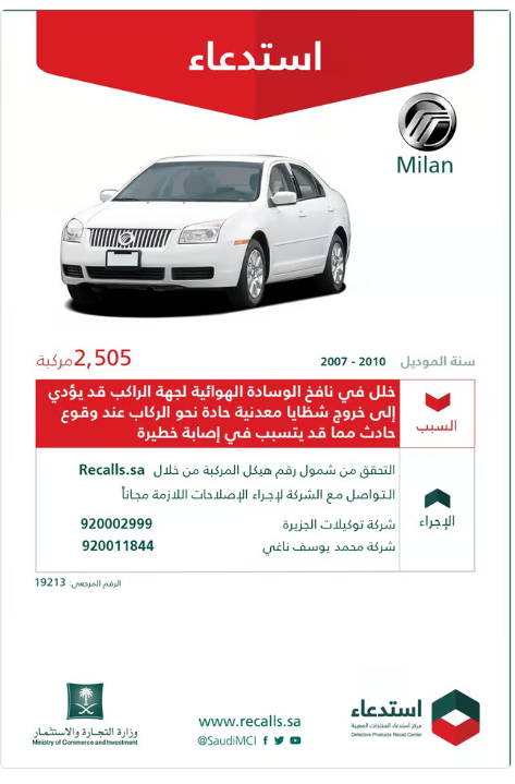 لضمان الحصول على الخدمة بشكل سريع وفعال، يمكن للمالكين التحقق من التفاصيل الخاصة بحملة الاستدعاء عبر الموقع الرسمي للوزارة أو عبر الوكلاء المعتمدين.