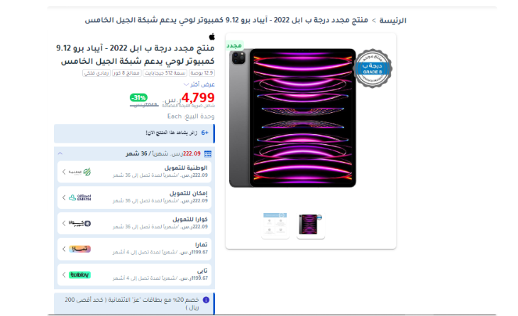 قدمت "مكتبة جرير" خيارات تقسيط مرنة لشراء iPad Pro عبر مجموعة من البنوك المختارة، وذلك باستخدام عدة أنظمة تقسيط تناسب احتياجات العملاء المختلفة، يمكن للمشترين الاستفادة من هذه الخيارات لشراء الجهاز على أقساط مريحة.