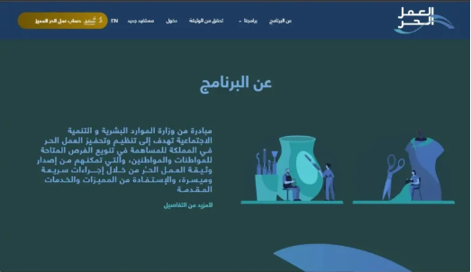 - الدخول إلى منصة الخدمة الإلكترونية: أولى الخطوات هي زيارة منصة الخدمة الخاصة بوثيقة العمل الحر، ثم تسجيل الدخول إلى الحساب الشخصي أو إنشاء حساب جديد إذا لم يكن لديك حساب سابق.