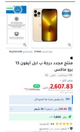 حاليًا يمكنك شراء iPhone 13 Pro Max بسعر 2,607 ريال فقط بدلًا من 4,173 ريال.