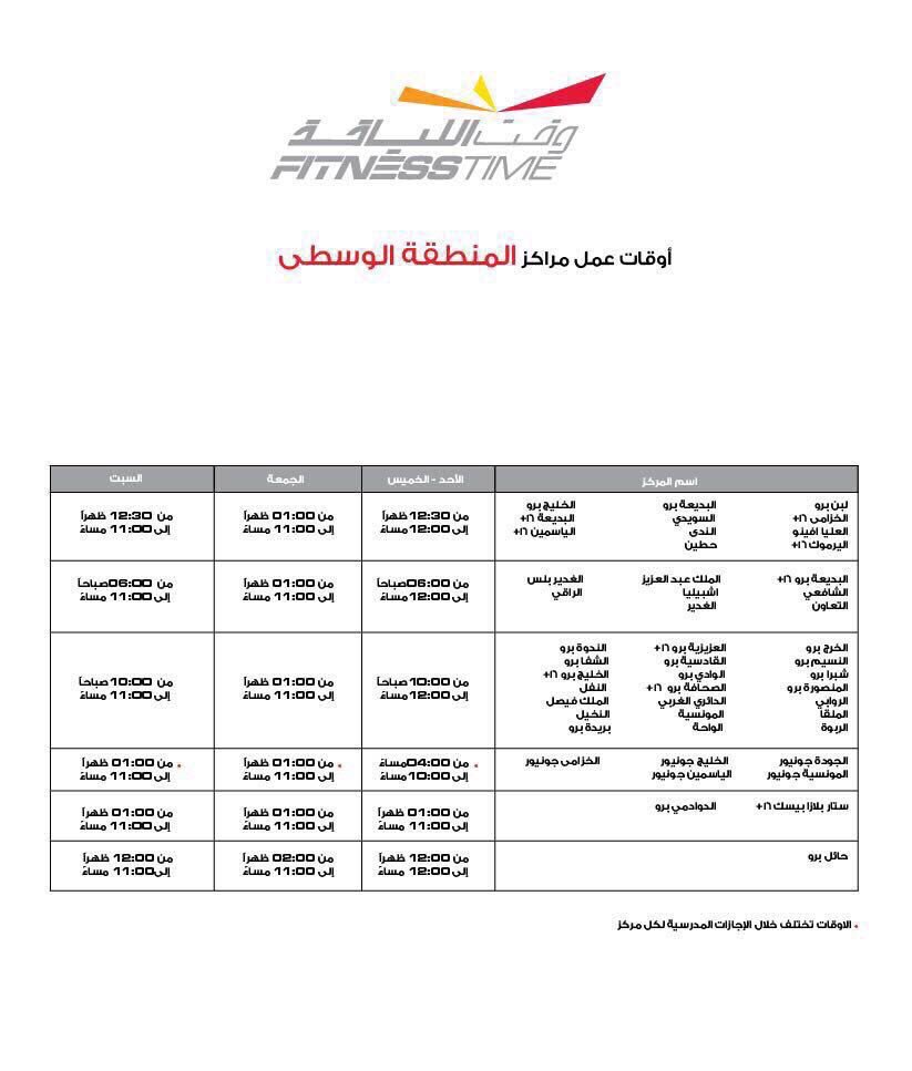 تنتشر فروع وقت اللياقة في مختلف مدن المملكة، وتختلف مواعيد العمل من فرع إلى آخر تبعًا للموقع والمنطقة.