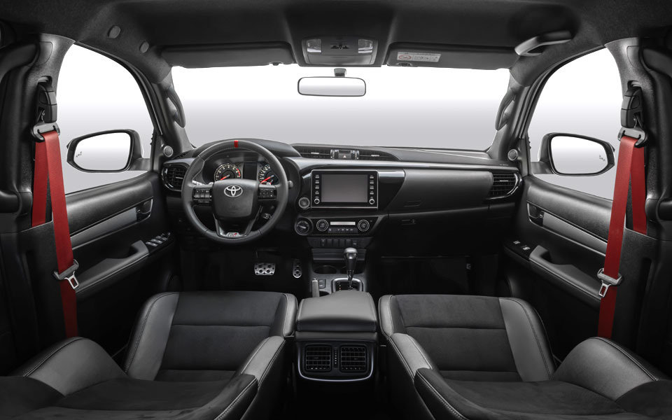 جاءت المقصورة الداخلية بتحديث شامل يشمل شاشة وسطية قياس 9 بوصات تعمل باللمس وتدعم أنظمة أبل كار بلاي وأندرويد أوتو، إضافة إلى نظام صوتي مطور من 8 سماعات، ومقاعد جلدية قابلة للتعديل الكهربائي في فئة “Limited” و“GR Sport”.