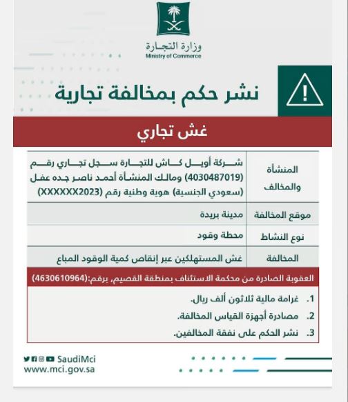 فقد تبين أن الشركة كانت تقلل الكمية الفعلية التي يحصل عليها المستهلك مقارنة بما يعرض على عدادات المضخات، إضافة إلى استخدامها أجهزة قياس غير مطابقة للمواصفات النظامية المعتمدة، وهو ما يشكل مخالفة صريحة لأنظمة ومعايير مكافحة الغش التجاري في المملكة.